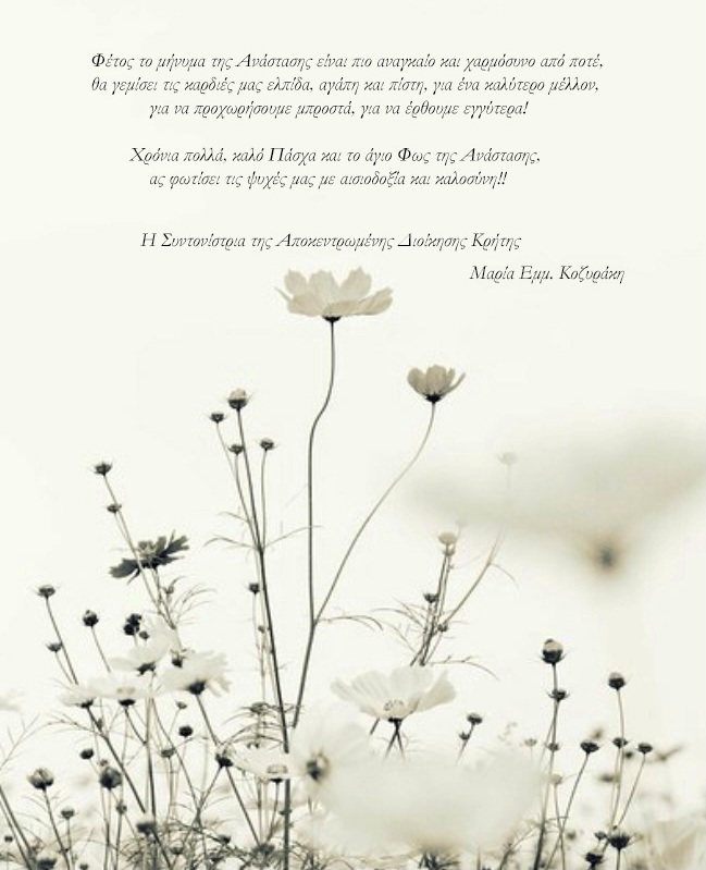Πασχαλινές Ευχές από τη Συντονίστρια Αποκεντρωμένης Διοίκησης Κρήτης